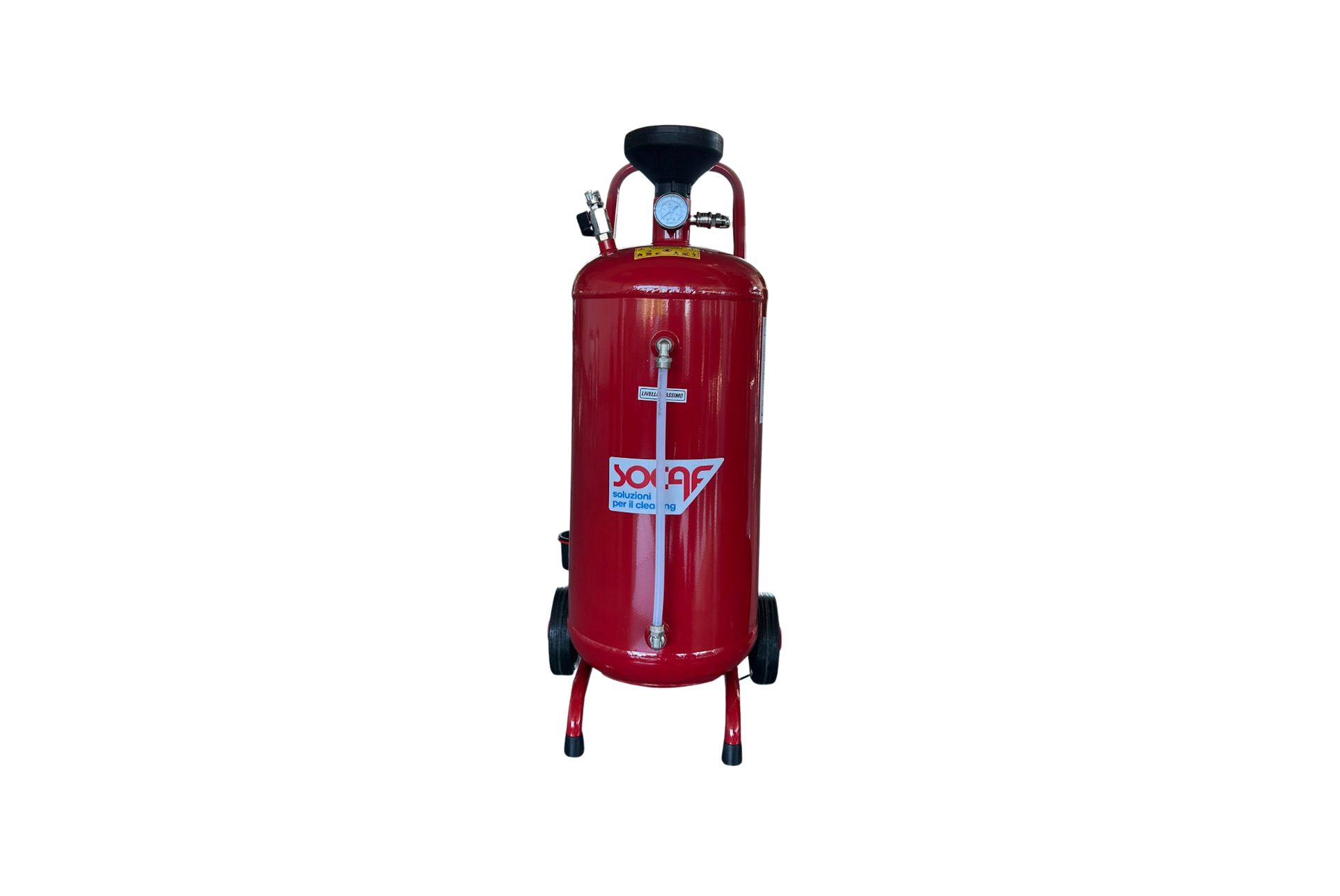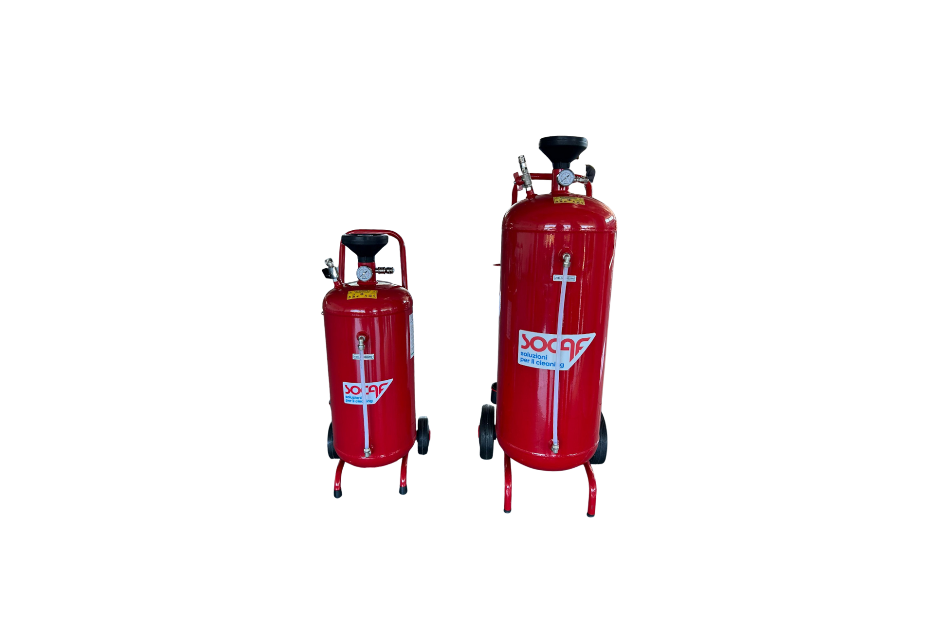 I Nebulizzatori 24LT – 50LT – 100LT di Socaf sono apparecchi per la nebulizzazione atossica di liquidi detergenti a bassa densità, quali oli lubrificanti e affini. Riempiti con liquido e pressurizzati con aria 6-8 bar, operano autonomamente senza necessità di collegamento continuo alla rete d’aria compressa.