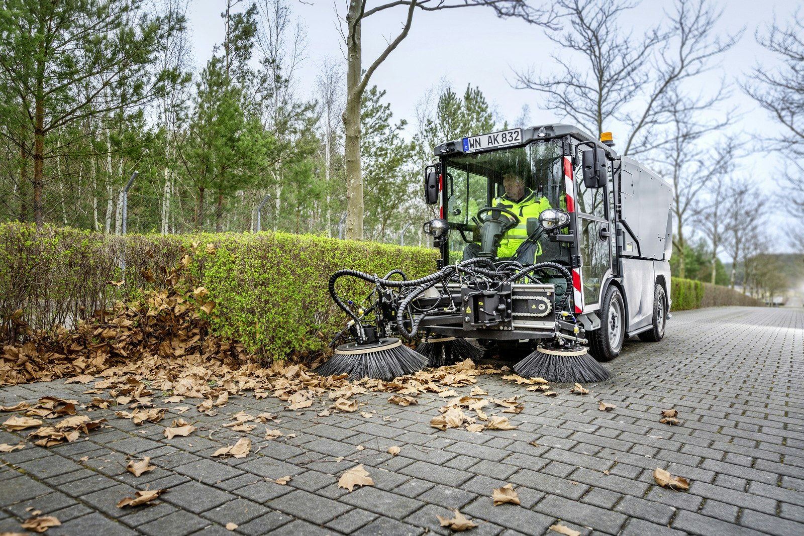 La spazzatrice aspirante MC 250 combina design moderno, alte prestazioni di pulizia e consumi ridotti. Offre un contenitore dei rifiuti da 2,5 m³, un'elevata velocità di trasporto di 60 km/h e massimo comfort grazie alle sospensioni idropneumatiche e alle sospensioni a ruota singola.